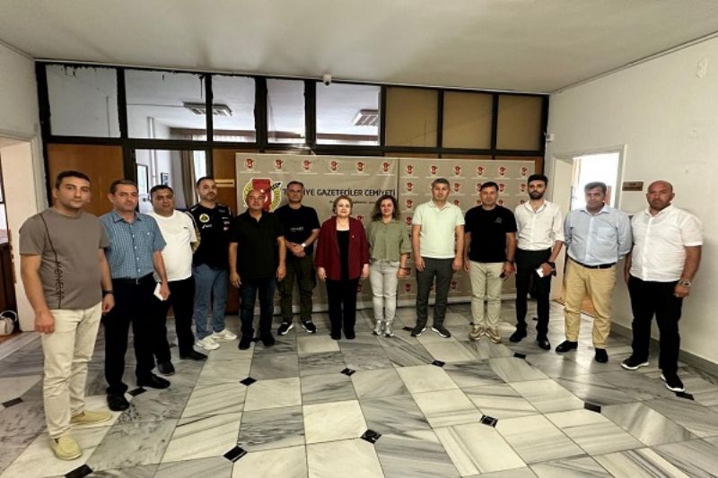 Heyeti, Türkiye Gazeteciler Cemiyeti adına Genel Sekreter Sibel Güneş karşıladı.