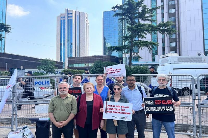 Türkiye Gazeteciler Cemiyeti (TGC), Sınır Tanımayan Gazeteciler (RSF), Türkiye Gazeteciler Sendikası (TGS) ve DİSK Basın İş, 29 Temmuz 2025 Salı günü saat 11:00’de İstanbul’da, İsrail Konsolosluğu önünde bir araya gelerek ortak bir açıklama gerçekleştirdi.