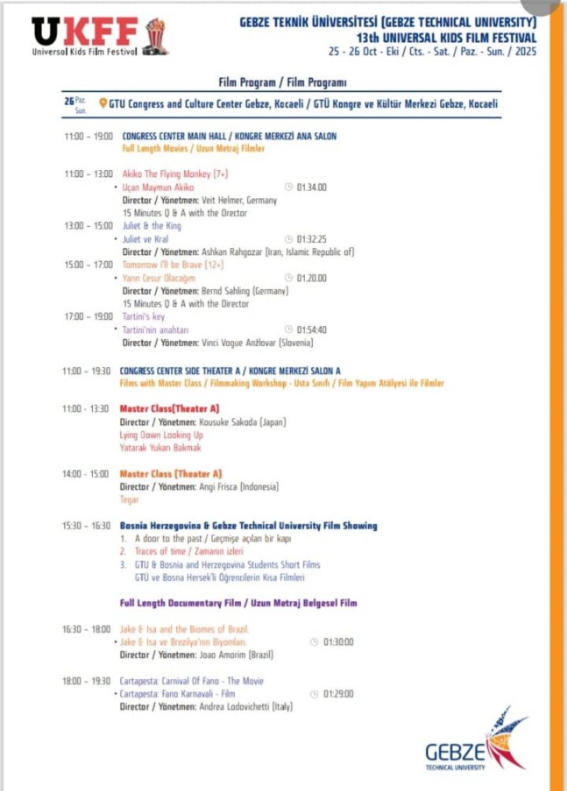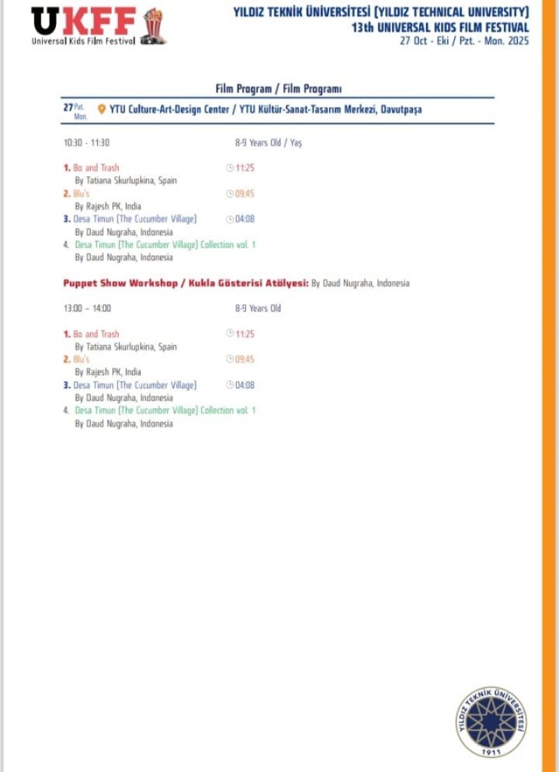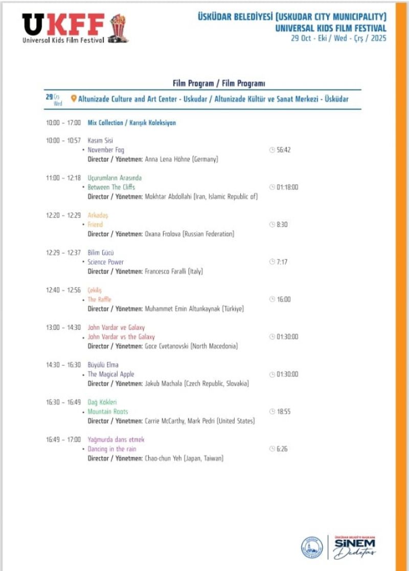 Yalova’da 15-18 Ekim 2025 tarihinde gerçekleşen 2.Uluslararası Yalova Film Festivalinin ardından 13. Evrensel Çocuk Film Festivali(UKFF) başlıyor.