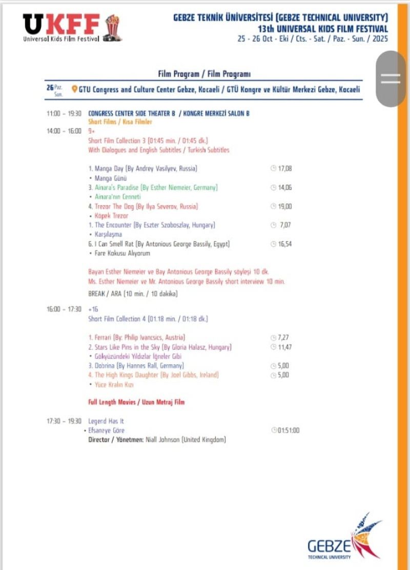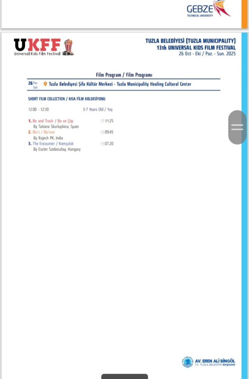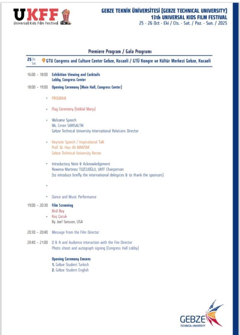 UKFF(Universal Kids Film Festival)’nin Türkiye koordinatörlüğünü Rowena Martinez Ulayan Tuzcuoğlu yürütüyor.