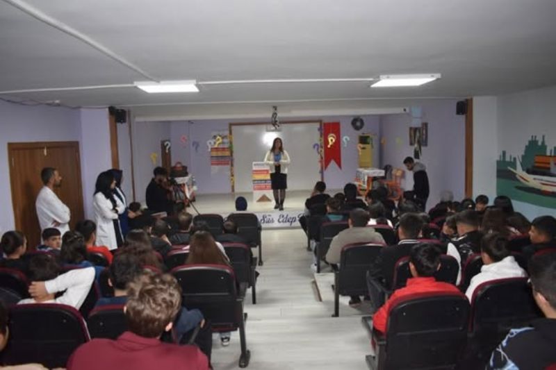 Söyleşiyi, okulun öğretmenleri Özcan Arslanoğlu, Ceylan Turhan, Sibel Ertaş, Şehmus Oduncu ve Yasin İde de ilgiyle takip etti.